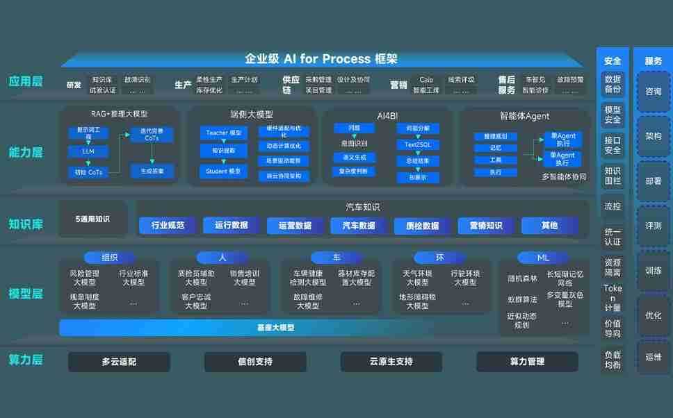 端到端的一站式AI工作空间深度融合了从企业战略规划到日常经营的全流程业务板块,,,,定向解决车企内部领域多、、部门多、、、链条长、、、场景碎片化等难题,,,支持车企快速构建以AI为核心的生产力写作体系,,,实现任务执行与AI能力的无缝集成与交互